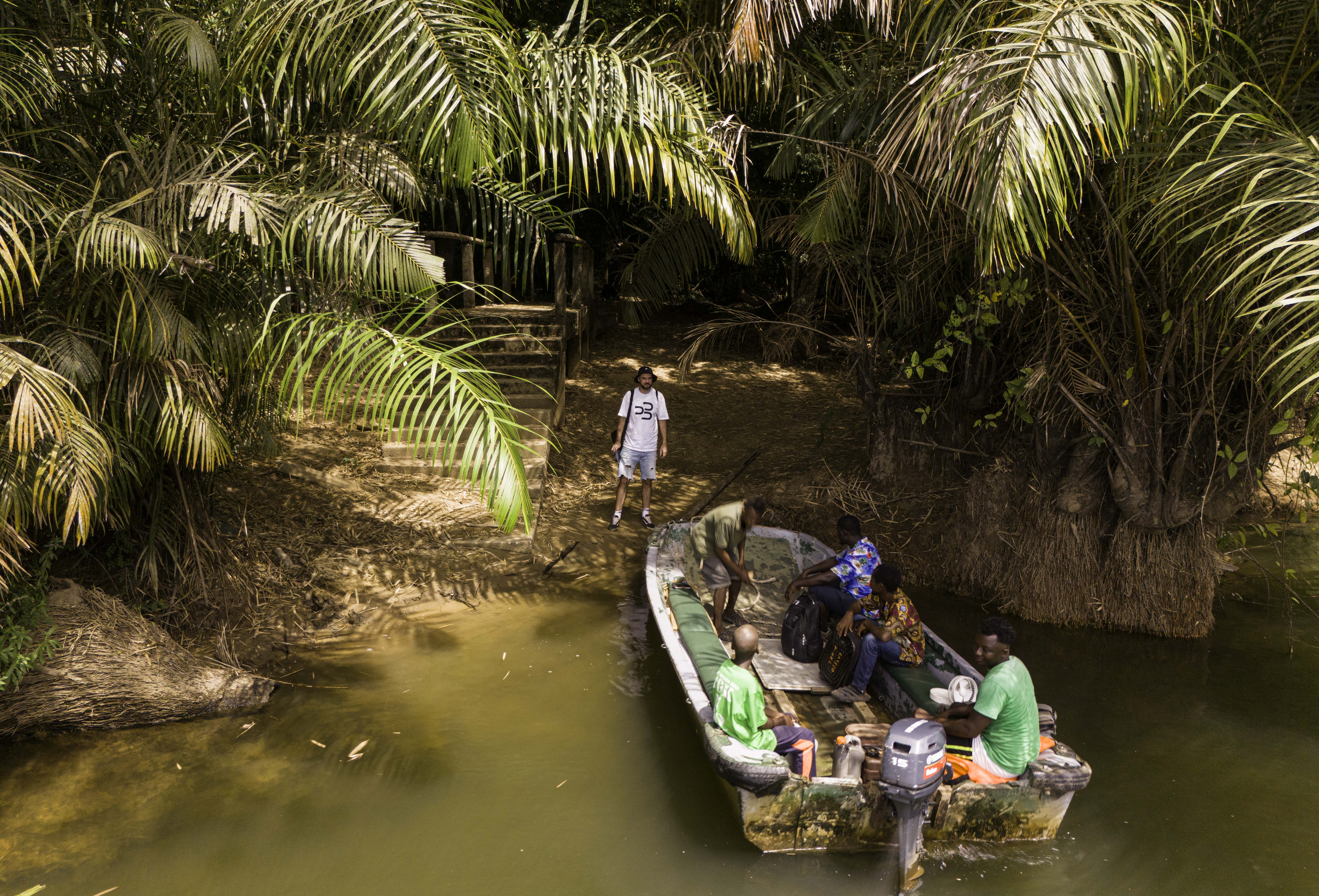 Malá zátoka, kde zastaví piroga, má v sebe už niekoľko väčších a ešte viac menších drevených lodí. Na pláži ležia vyhodené kamenné balvany a za nimi už začína cesta okolo mnohých stromov a malých políčok, kde miestni čo to pestujú.