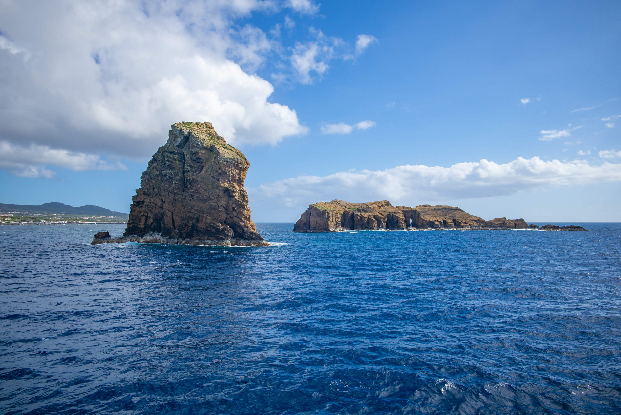 A aká je teplota Atlantiku pri Azoroch? Od júna do septembra sa priemerná teplota vody pohybuje okolo 20 – 22 °C, pričom najteplejší mesiac je spravidla august. V zime je priemerná teplota vody 16 – 18 °C, pričom najchladnejšie mesiace sú január a február, kedy voda môže klesnúť až na 15 °C. Teplota oceánu v okolí Azorov je vyššia než pri pevninskom Portugalsku, pretože Atlantický oceán pri Azoroch ovplyvňuje Golfský prúd. Okolo nás sa týčia strmé zelené útesy.